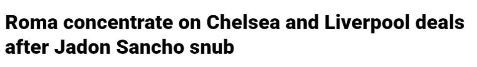 意大利《罗马体育报》坚称,桑乔并没有正式拒绝罗马俱乐部,但承认桑乔对转会犹豫不决,半死不活的希望,这反而让这家意甲俱乐部更为痛苦。该俱乐部足球总监对谈判缺乏进展表示沮丧,指责桑乔缺乏加盟本队的动力。